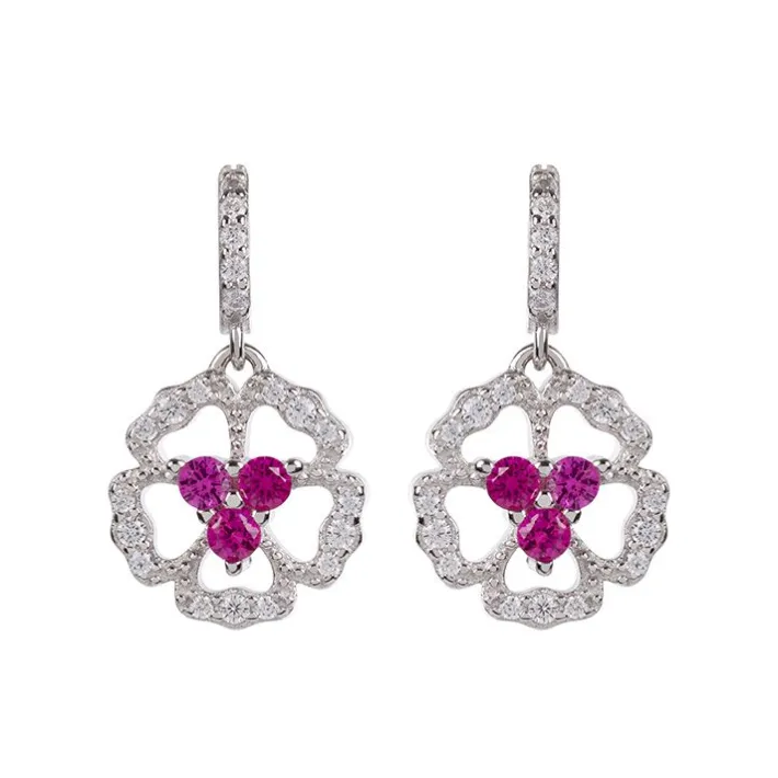 Set With Cubic Zirconia Crystals And Synthetic Rubies, These Earrings Are Hallmarked Sterling Silver.