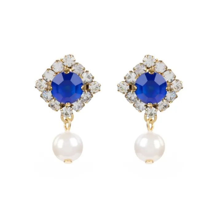 23Kt Gold Plating, Clear Crystals, 1 White Faux Pearl And Hand Painted Blue Crystal